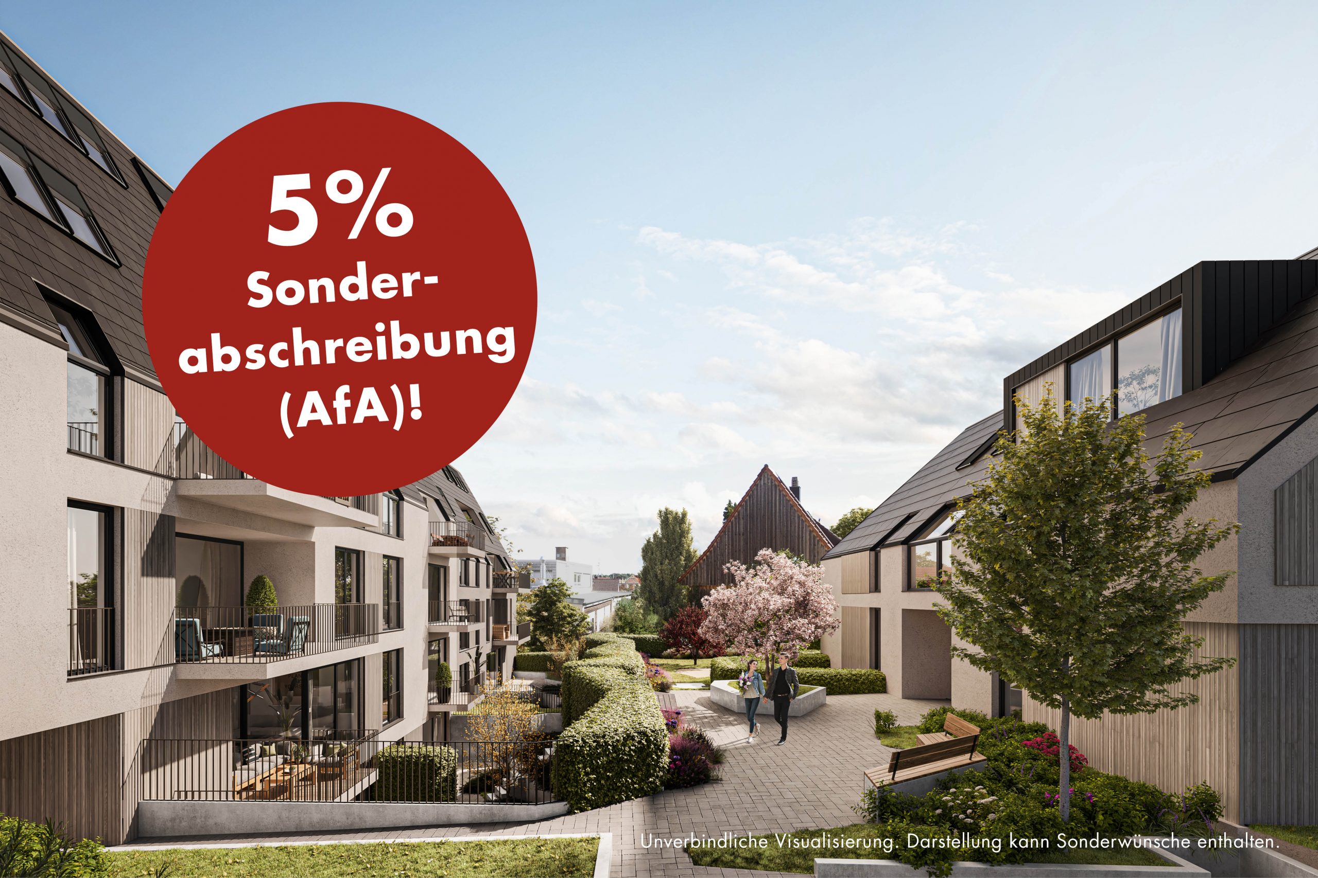 Licht, Luft, Sonne und ein idyllisches Umfeld mit Blick auf gepflegtes Grün. Das sind die verbindenden Elemente zwischen dem Vorderhaus und dem Haus im Garten.